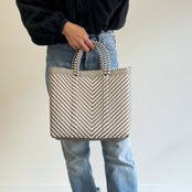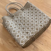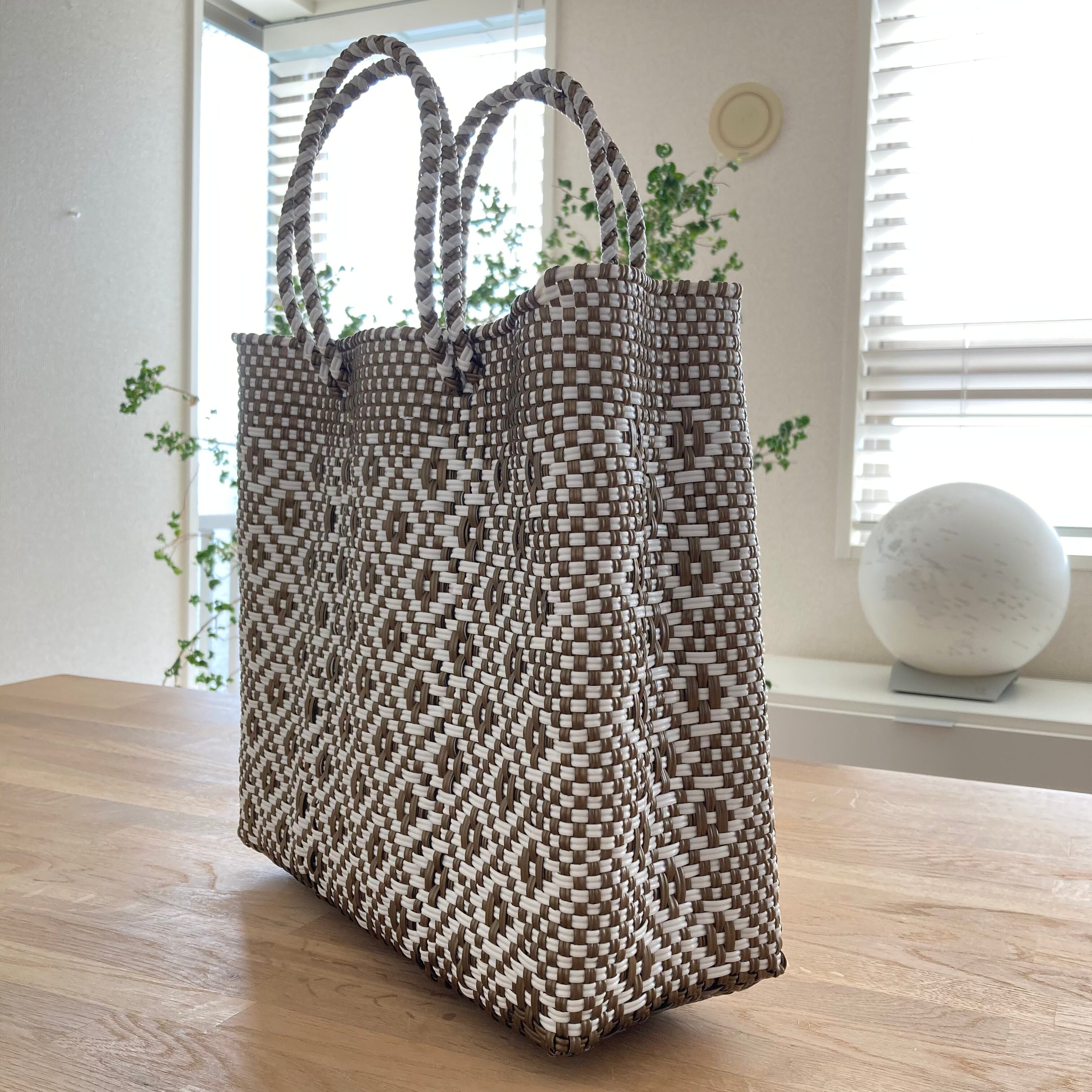 再生プラスティックを利用し、伝統的な技法で編まれた籠バックは、軽量で耐久性があることが特徴。汚れがついても、丸洗いができるので安心です。