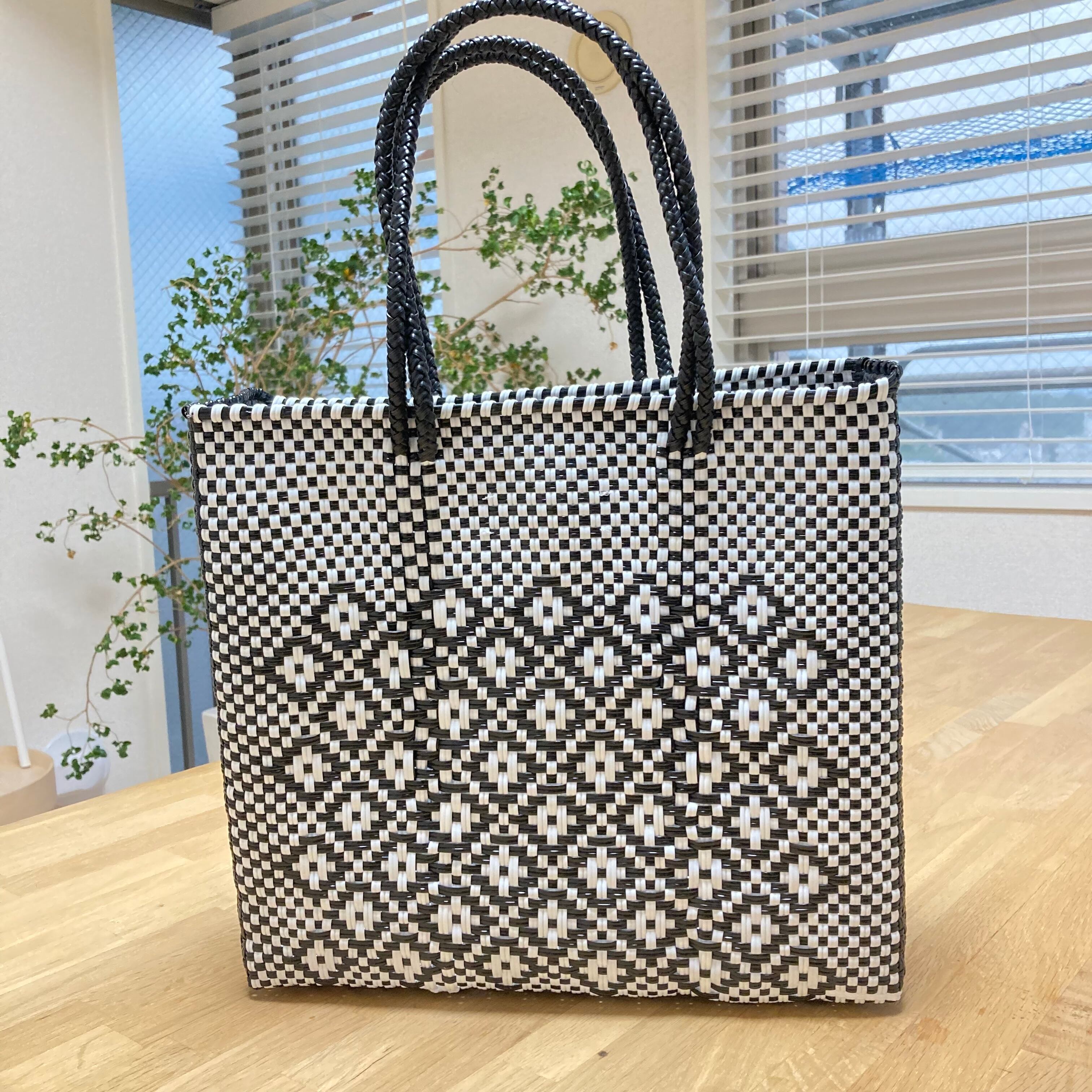 再生プラスティックを利用し、伝統的な技法で編まれた籠バックは、軽量で耐久性があることが特徴。汚れがついても、丸洗いができるので安心です。