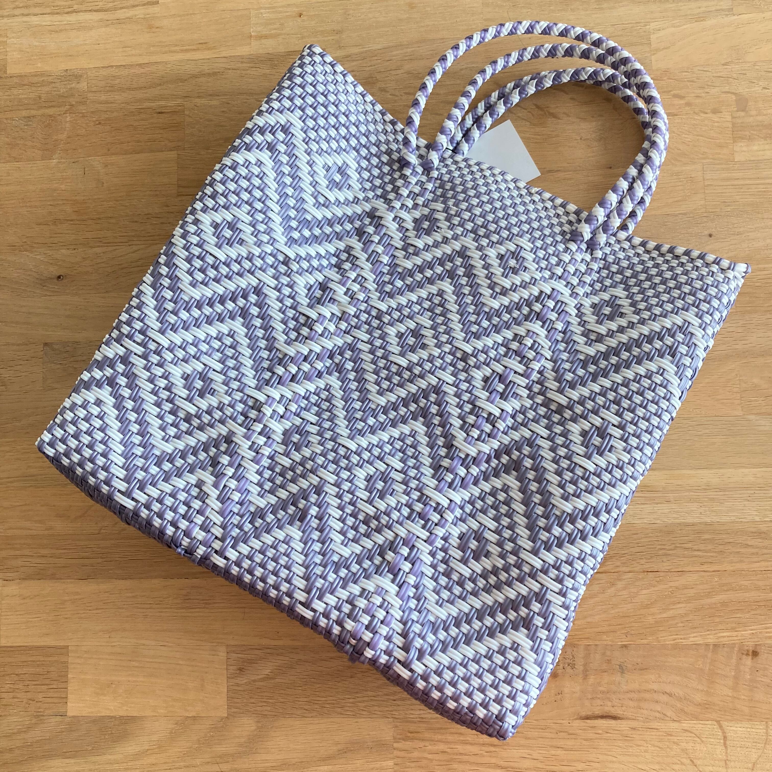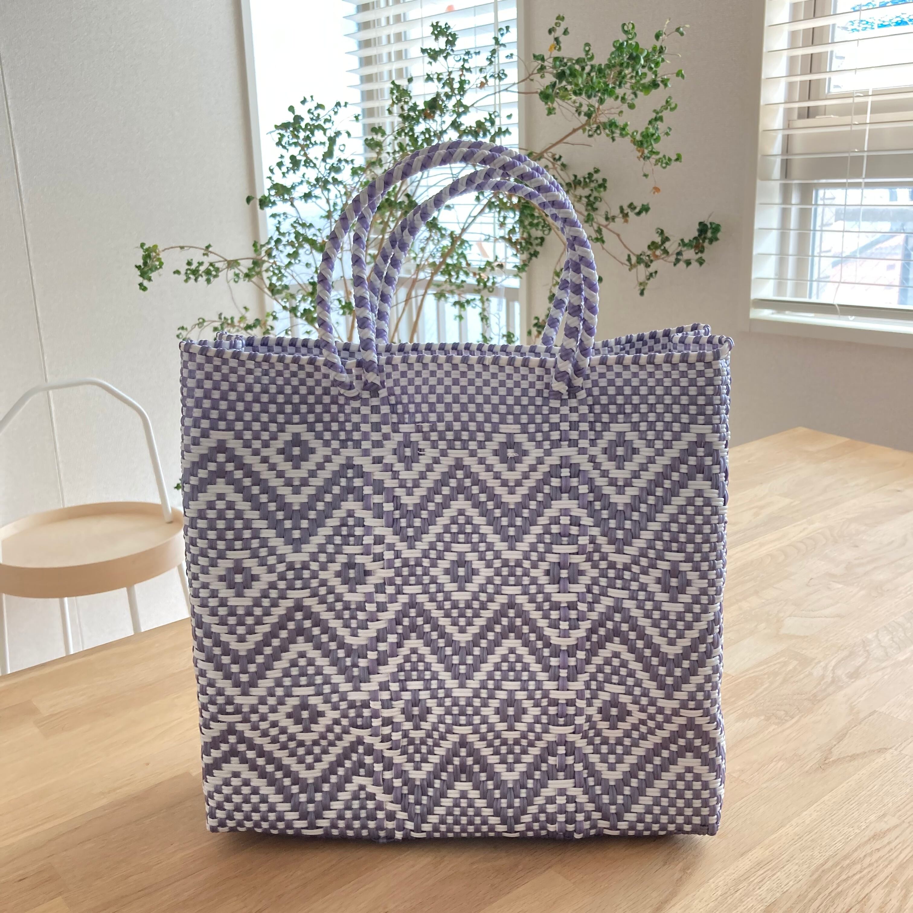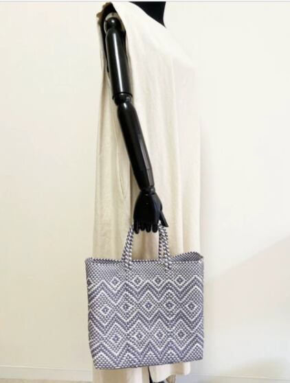 再生プラスティックを利用し、伝統的な技法で編まれた籠バックは、軽量で耐久性があることが特徴。汚れがついても、丸洗いができるので安心です。